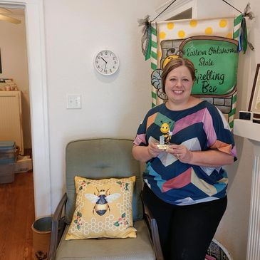 Director of Tourism and Exposition for the City of Muskogee is all smiles after being presented a BEE plaque recently from EOSSB Director, Susan Hoog.